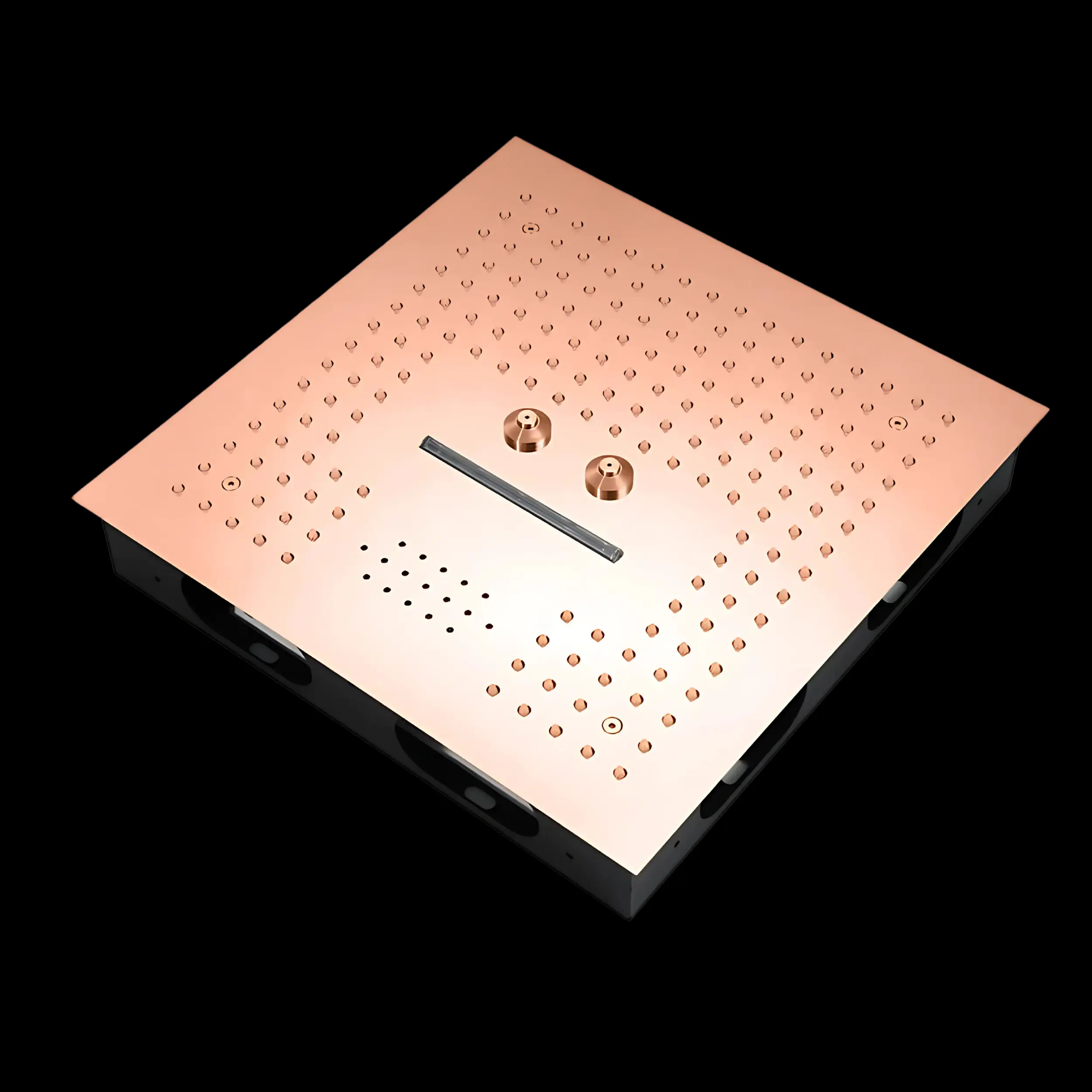 Elevate your bathroom with the BrisaStream Rose Gold Shower (Model No. VV BO-24093-5). This luxurious ceiling-mounted shower features Rain, Waterfall, and Mist functions, along with LED lighting and Bluetooth music connectivity for a truly spa-like experience.