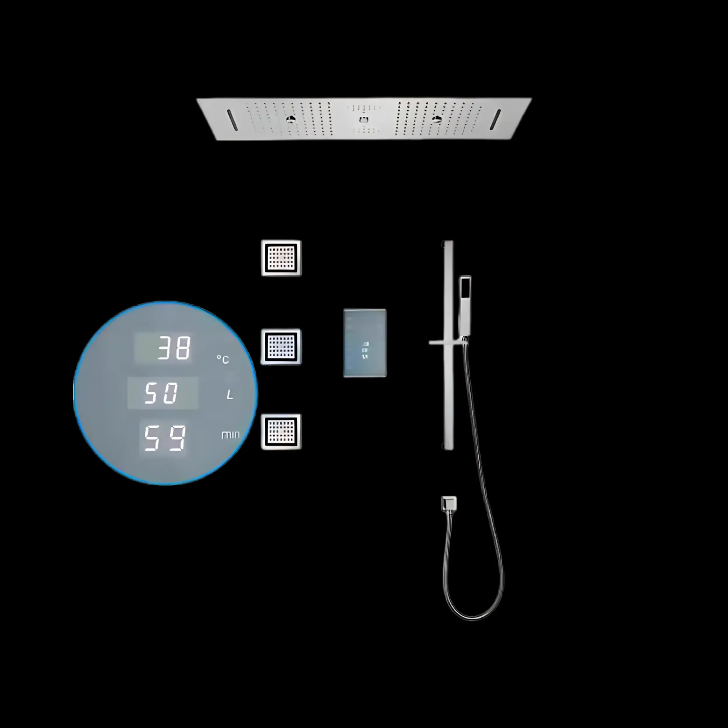 Upgrade your shower experience with the JetSetta Shower System Vv-15318A-1. This chrome-finished shower system offers both luxury and functionality for your bathroom, featuring a 4-function LED shower head, Bluetooth music, and advanced 6-function thermostatic control.