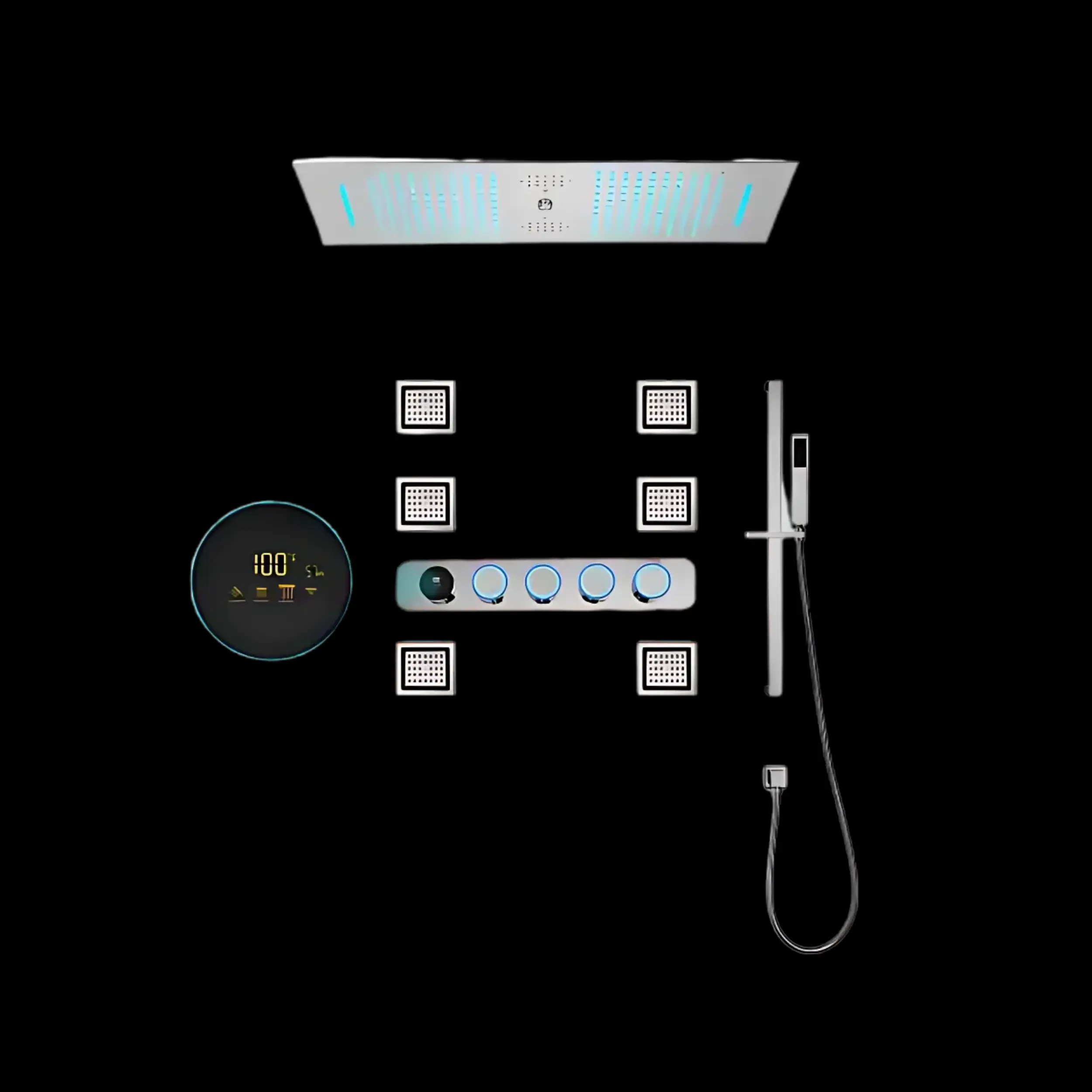 With six 130 x 120mm body jets, this system delivers a soothing, full-body massage that transforms your shower into a spa-like experience. These jets are designed to relieve tension and offer comfort, enhancing your overall well-being.